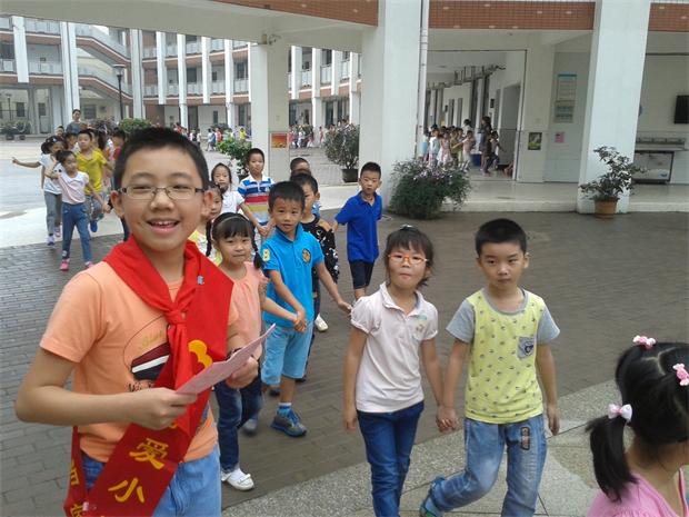 紧接着的第二站是我们的东门口艺体楼前,这里有我们博爱的LOGO。当问起图案代表着什么,很多聪明的小朋友已经能够说出它的寓意了。爱心代表着爱,小苗代表着我们,书本代表着我们要好好学习,所以我们要做一名博学有爱心的好学生。就这样,孩子们用他们最朴实的语言说出了我们学校“博学、仁爱”的校训。相信这个校训一定会深入到他们的内心,伴随他们成长。