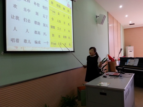 任玺铮老师是位怀孕7个月的准妈妈,她主动提出上研究课的精神真是值得同行们学习。所执教的《丰收之歌》是一首丹麦民歌,曲调欢快活泼,节奏带有舞蹈性。一拍一音,利落豪爽的音乐风格和直率而稍带幽默感的歌词,使我们联想起人们围着篝火跳起轮舞的欢乐场面,表现了人们的劳动热情和丰收的喜悦。任老师让学生在听赏歌曲的同时清晰歌曲的结构并找出乐句的相似与不同,学生在学唱歌曲时体会歌曲明朗欢快的情绪。但老师要注意学唱歌曲时的速度不应该太慢而导致学生难以掌控歌曲。在拓展部分,任老师带领学生听木琴演奏的《霍拉舞曲》,感受木琴的音色与动感的旋律,学生意犹未尽。