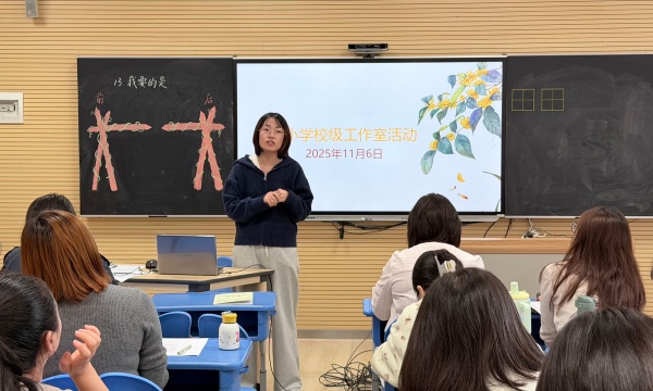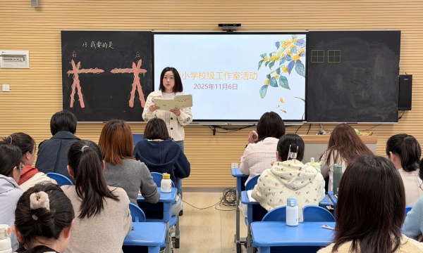 许婷婷副校长则聚焦《儿童学习组织视角下的小学语文真实情境教学研究》,系统梳理了校级工作室的探索足迹。她明确,工作室始终秉持“以儿童为主体”的核心理念,将“立德树人”深植于真实情境的教学土壤,让学习与生活紧密相连。研究历经三个阶段层层推进:从初期的理念构建与《京剧趣谈》等课例萌芽,到中期深化语文实践、参与省级项目锤炼,再到现阶段深耕跨学科融合,成功打造《铁杵成针》等特色课例。通过共读专著、常态教研与课题引领,工作室实现了理论与实践的螺旋上升,并在课堂教学、教科研能力及团队建设上取得丰硕成果。展望未来,工作室将持续深化跨学科融合,系统凝练成果、构建资源库,并进一步发挥示范辐射作用。许校还特别对蒋琦老师的课进行了细致点评,在肯定其字词教学扎实、学生参与度高的同时,亦指出“30+10”作业设计体现不足,为教学优化锚定了前行的方向。
