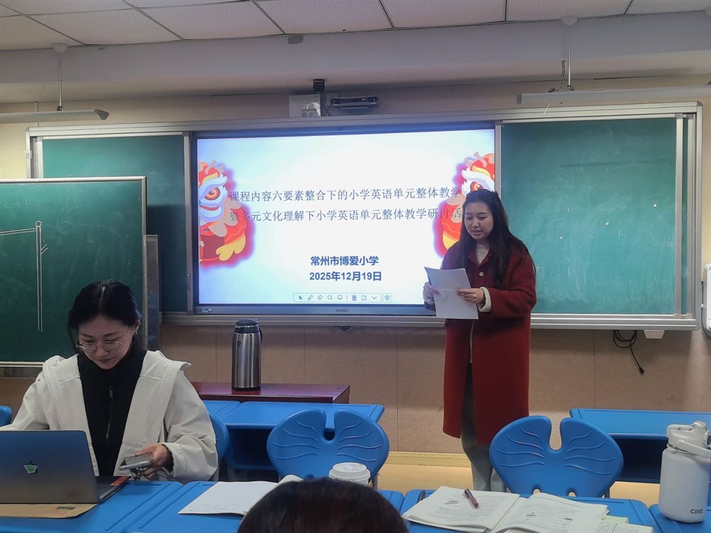 12月19日,省级英语重点课题“课程内容六要素整合下的小学英语单元整体教学”和“多元文化理解下小学英语单元整体教学”在博爱小学开展课题研讨活动,天宁区小学英语教研员杭燕楠老师及全体博爱英语教师全程参与活动。